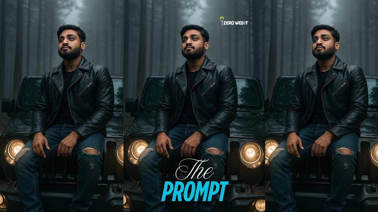 📸 PROMPT TO COPY: (…Original image( take face refrence from uploaded image. in a black leather jacket and ripped jeans sitting on the hood of a modern black off-road Jeep in a foggy pine forest. The headlights are on, casting a soft glow. Mist and tall trees fill the background, creating a moody cinematic atmosphere. The man looks upward, as if pondering or dreaming. Moody lighting, soft shadows, shallow depth of field, forest reflections on the car hood, cinematic tone, with the size is 9:16 and quality is 8k ..) Feature Description 🎭 Face Match Required — upload a clear front-facing portrait 🧠 Best Platforms Chat Gpt, Midjourney, DALL·E, Leonardo AI 📱 Format Portrait (9:16) — perfect for Instagram Reels or Stories 🎮 Style Inspiration Cinematic, street racing, Need for Speed–like visual atmosphere ✅ Face match required✅ Best for Chat Gpt, Midjourney, DALL·E, Leonardo AI✅ Format: Portrait (9:16) — Perfect for Instagram Reels & Post 🛠️ HOW TO USE THIS PROMPT: Upload your photo to the AI platform (Chat Gpt). Paste the full prompt (above). Upload Your Image. Share it on Instagram Post with trending music. ( Need a Website Today ? ) 🚀 Build Your Dream Portfolio Website Today! ( Call Now – +91 81143 56975 ) Live Demo I’m a professional website developer with 3+ years of industry experience.If you’re a designer, editor, freelancer, or content creator looking to showcase your work in a clean, responsive, and modern portfolio website — I’ve got you covered! ✅ Custom Design✅ Fast Loading & Mobile-Friendly✅ Easy to Update✅ SEO Optimized✅ Affordable Pricing 📩 DM me or tap the contact link — let’s build your online presence the right way. Call Now Disclaimer This post is for educational and creative use only. The AI-generated images and prompts should respect likeness rights, copyright rules, and community standards. 🗨️ Your Turn Have you tried this prompt?📸 Share your AI creation with us or tag @technicalissue on Instagram!